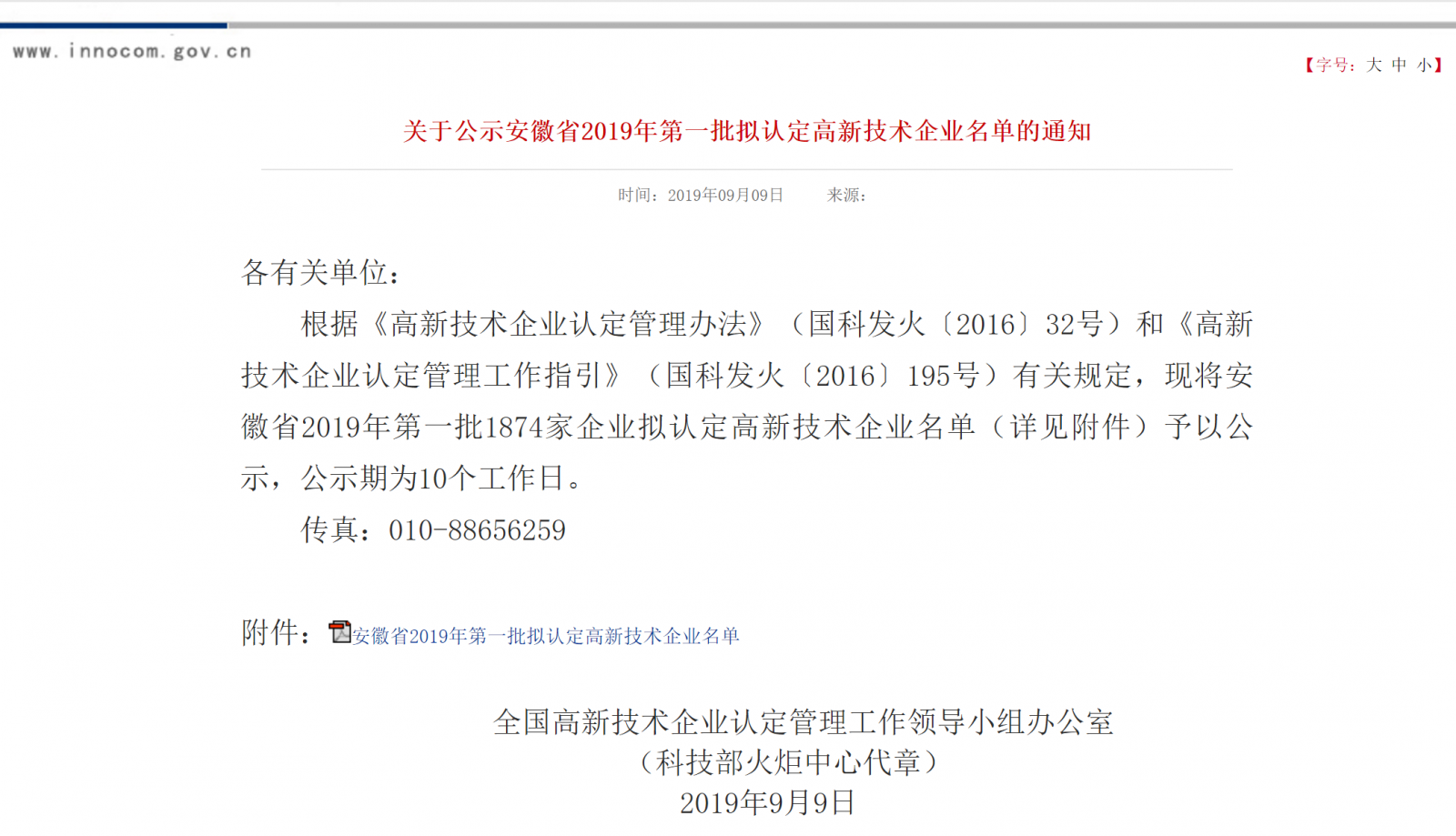According to the "High-tech Enterprise Certification Management Measures" (Guo Ke Fa [2016] No. 32) and the "High-tech Enterprise Certification Management Work Guidelines" (Guo Ke Fa Huo [2016] No. 195), the national high-tech enterprise identification management work leader The group office will publicize the list of the first batch of 1,874 enterprises to be identified as high-tech enterprises in 2019 in Anhui Province. Our company has once again been recognized as a high-tech enterprise and has been recognized as a high-tech enterprise for three consecutive times.